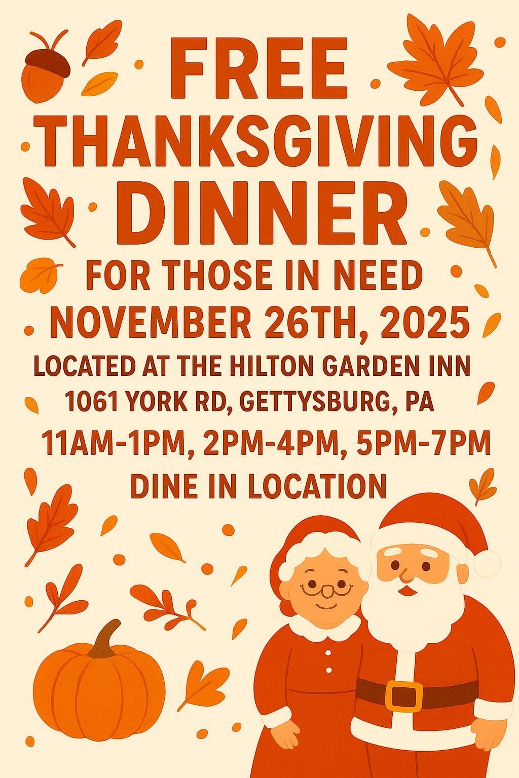 Free Thanksgiving Dinner for those in need on November 26th, 2025.